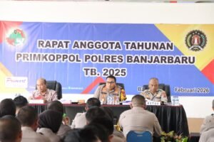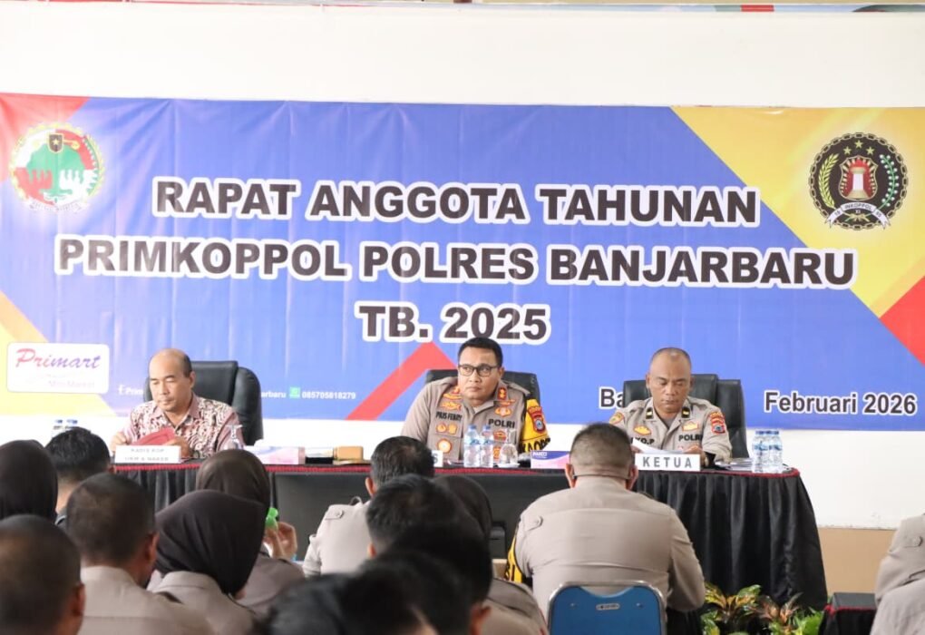 MEDIAKITA.CO.ID – Upaya memperkuat peran koperasi dalam menunjang kesejahteraan anggota kembali ditegaskan dalam Rapat Anggota Tahunan (RAT) Tahun Buku 2025 yang digelar Primer Koperasi Kepolisian (Primkoppol) Polres Banjarbaru, Kamis (12/2/2026). Kegiatan yang berlangsung di Aula Joglo Polres Banjarbaru itu dibuka langsung Kapolres Banjarbaru Pius X Febry Aceng Loda. Hadir pula perwakilan Dinas Koperasi UKM dan…