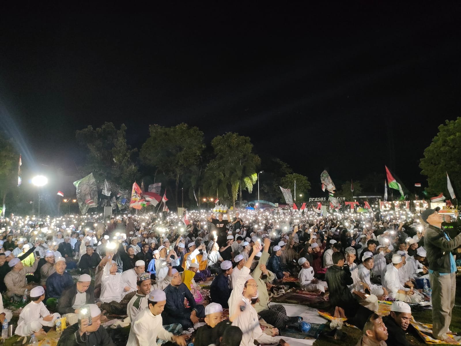Kemeriahan Ribuan Masyarakat yang larut dalam lantunan sholawat yang dipimpin ulama kharismatik, Habib Syech bin Abdul Qadir Assegaf. Foto – Raden