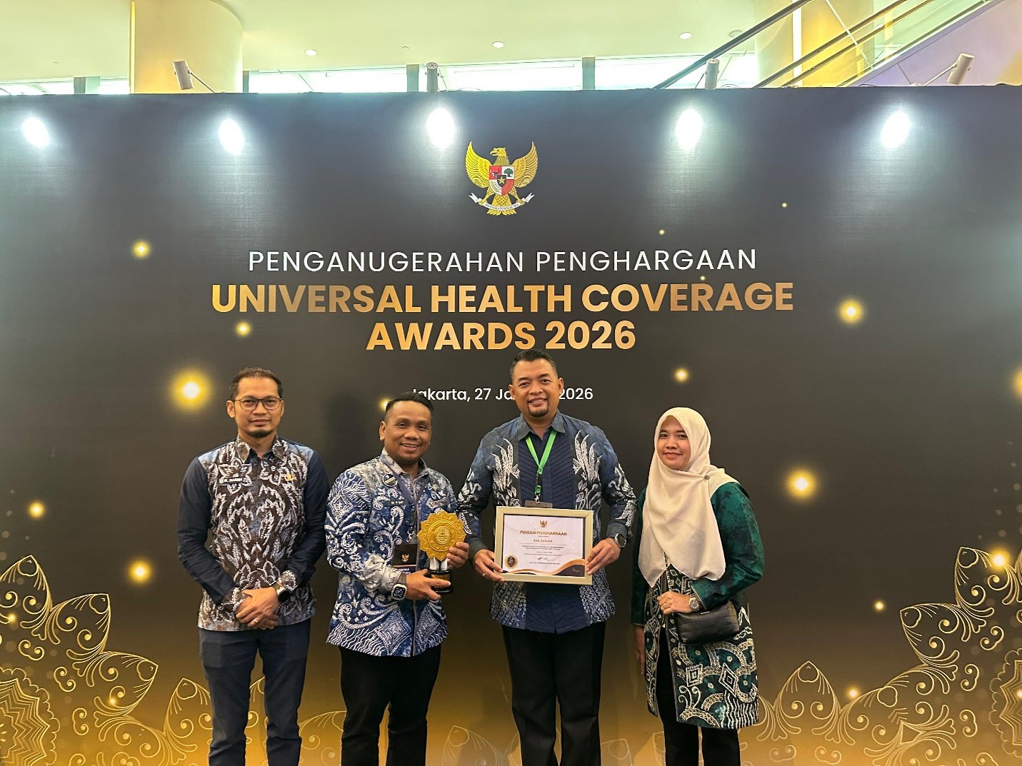 Sekda Banjar Yudi Andrea saat menerima penghargaan Universal Health Coverage (UHC). Foto – MC Banjar untuk Mediakita.co.id