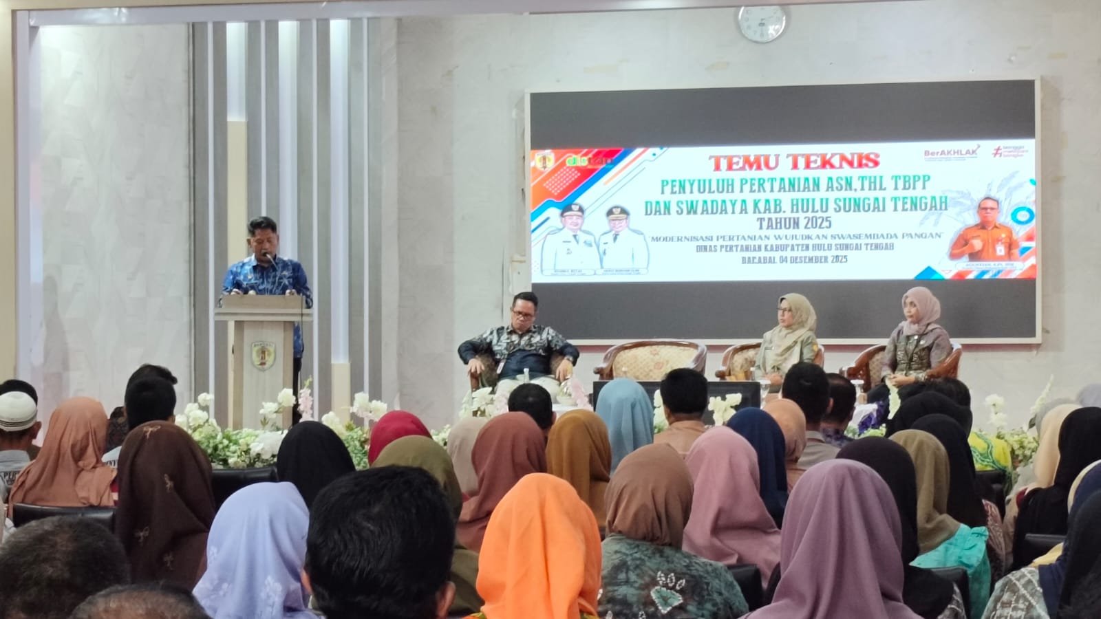 MEDIAKITA.CO.ID – Bupati Hulu Sungai Tengah (HST), Samsul Rizal membuka Temu Teknis Penyuluh Pertanian Kabupaten HST Tahun 2025 di di Pendopo Kabupaten HST, Kamis (4/12/2025) dengan dihadiri penyuluh pertanian ASN, THL-TBPP, serta penyuluh swadaya dari seluruh kecamatan di HST.