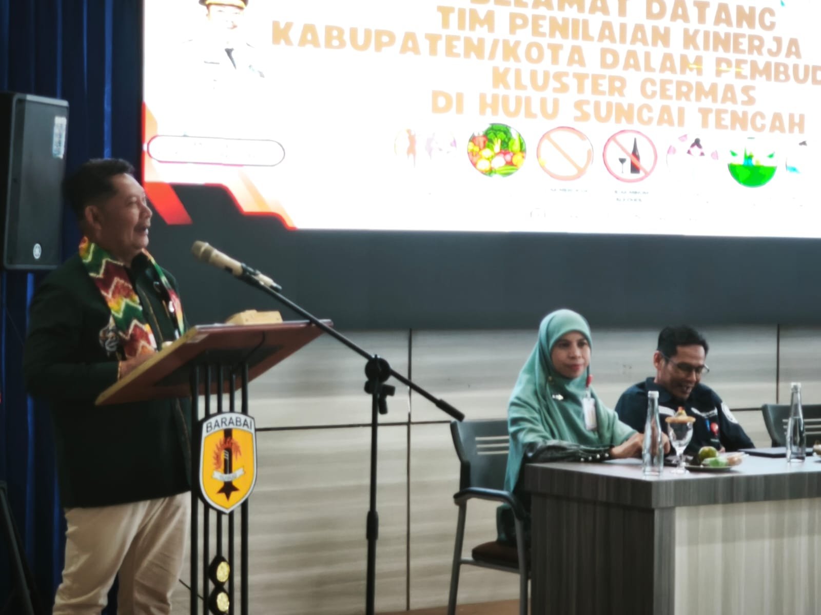 Bupati HST, Samsul Rizal saat memberikan sambutan dalam acara penilaian kinerja kabupaten dan kota dalam Pembudayaan Kluster Germas. Foto – Istimewa