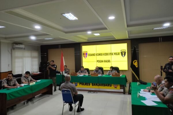 Sidang KKEP yang dipimpin AKBP Budhi Santoso. Foto – Raden MEDIAKITA.CO.ID – Sidang Komisi Kode Etik Polri (KKEP) akhirnya memutus bersalah dan memberhentikan dengan tidak hormat, M. Saeli oknum anggota polisi yang bertugas di Polres Banjarbaru, lantaran diduga kuat sebagai pelaku pembunuhan terhadap mahasiswa ULM yang mayatnya ditemukan diaelukan lingkungan Kampus STIH Sultan adam, Banjarmasin….