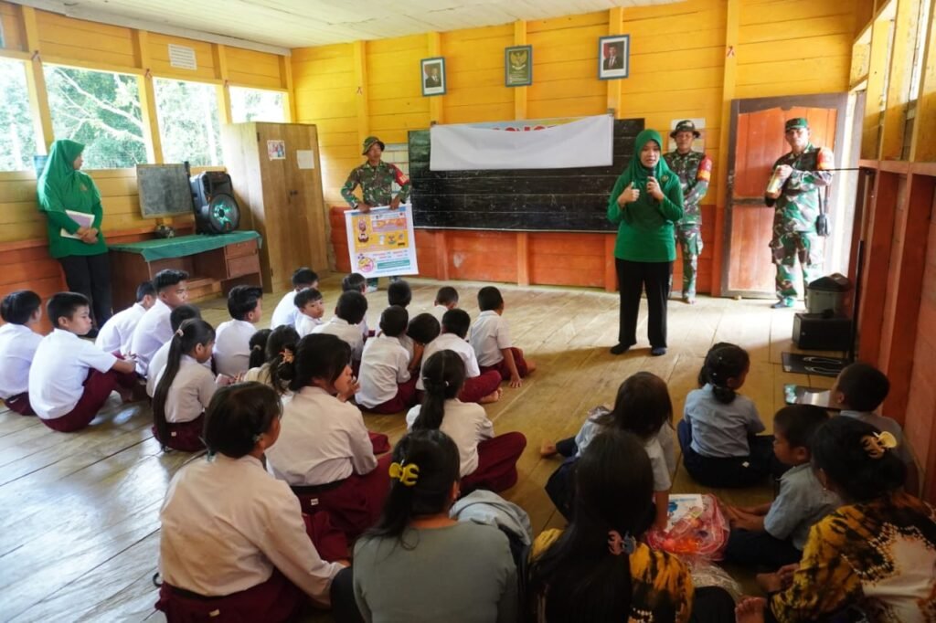 Ketua Persit Kartika Chandra Kirana Cabang XXV Kodim 1002 Koorcab Rem 101 PD XXII/Tambun Bungai Ny. Hapsari OP. Siregar bersama Tim ke memberikan sosialisasi dan pelayanan kesehatan kepada Siswa SD dan warga desa Juhu.