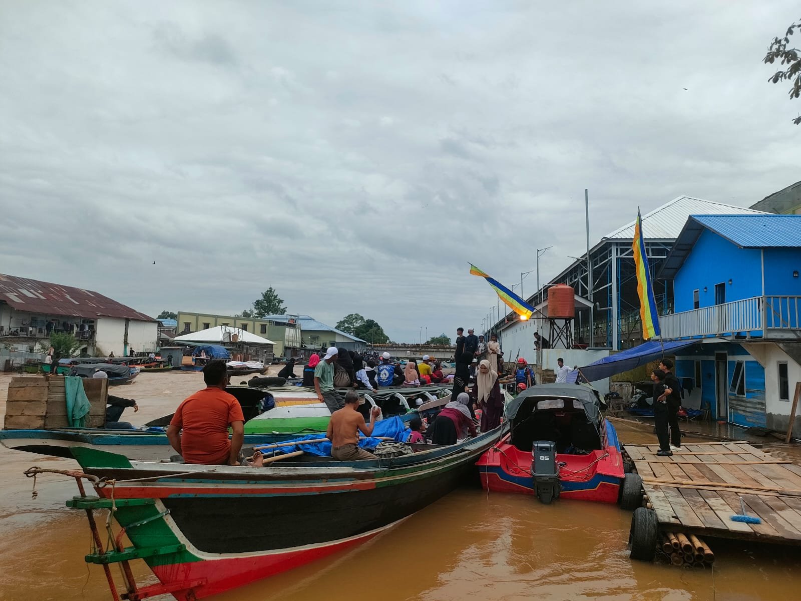 MEDIAKITA.CI.ID – Kondisi jemaah pada H-1 momen 5 Rajab di jalur perairan terpantau semakin padat, Sabtu (27/12/2025). Kepadatan ini terlihat dari meningkatnya jumlah kapal yang melintas di sepanjang sungai.