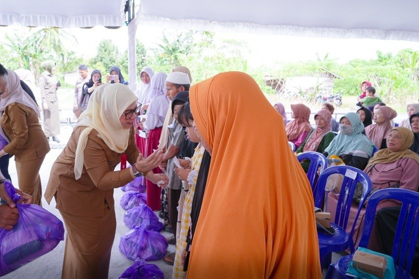 Wali Kota Banjarbaru, Hj. Erna Lisa Halaby saat menyapa Dhuafa, Lansia dan Anak Yatim Guntung Manggis. Foto – MC BJB.