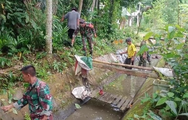 Antisipasi Musim Hujan, Koramil Haruyan Gelar Gotong Royong Bersihkan Irigasi