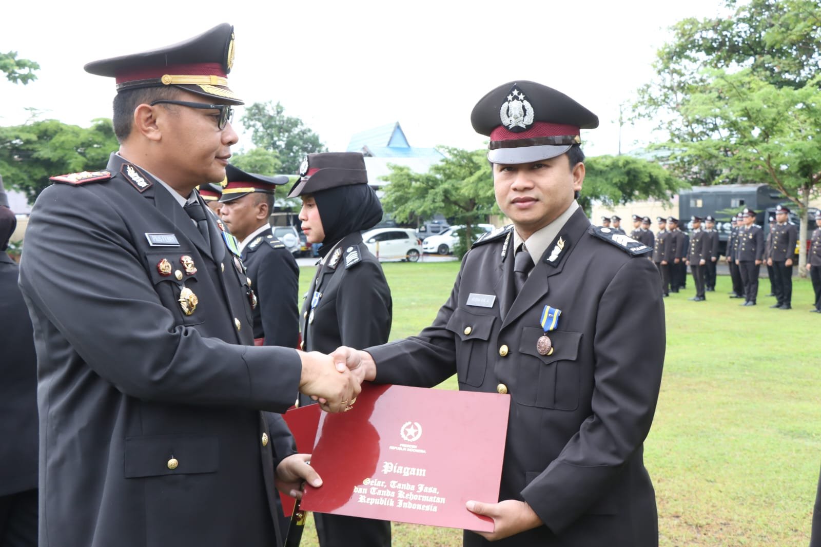 Ia berharap penghargaan tersebut tidak hanya menjadi kebanggaan bagi penerima dan keluarga, tetapi juga menjadi motivasi bagi seluruh personel untuk terus meningkatkan profesionalisme, integritas, serta kualitas pelayanan kepada masyarakat.