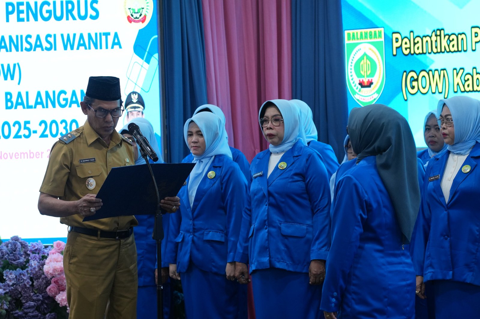 Wakil Bupati Balangan, Akhmad Fauzi, saat melantik Ketua GOW, Yanti Fauzi, beserta jajaran pengurus di Aula Benteng Tundakan, Selasa (18/11/2025). Foto – Mc Balangan untuk Mediakita.co.id